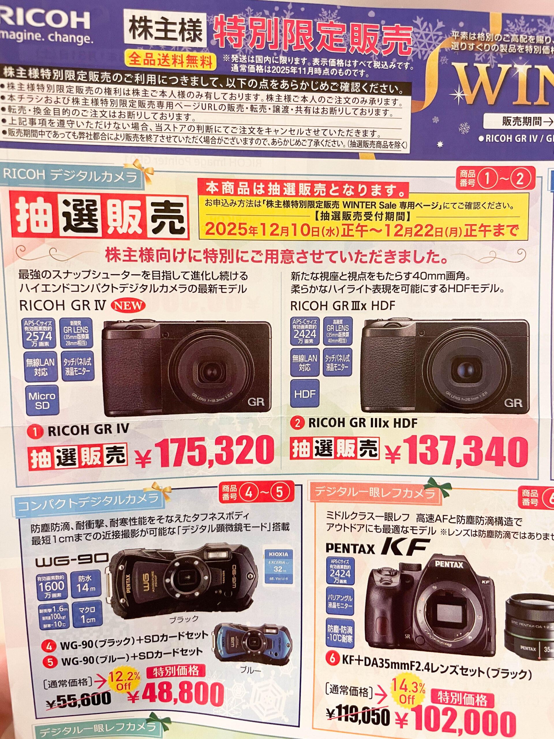 「RICOH GRⅣ(抽選販売)」株主様向けに特別にご用意させていただきました。